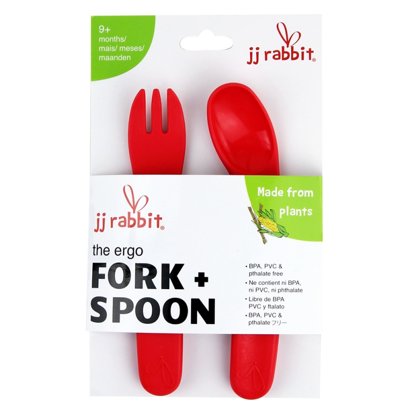 Set 1 cucchiaio e 1 forchetta in bioplastica, JJ Rabbit. Utilizzabile dai 9 mesi.
