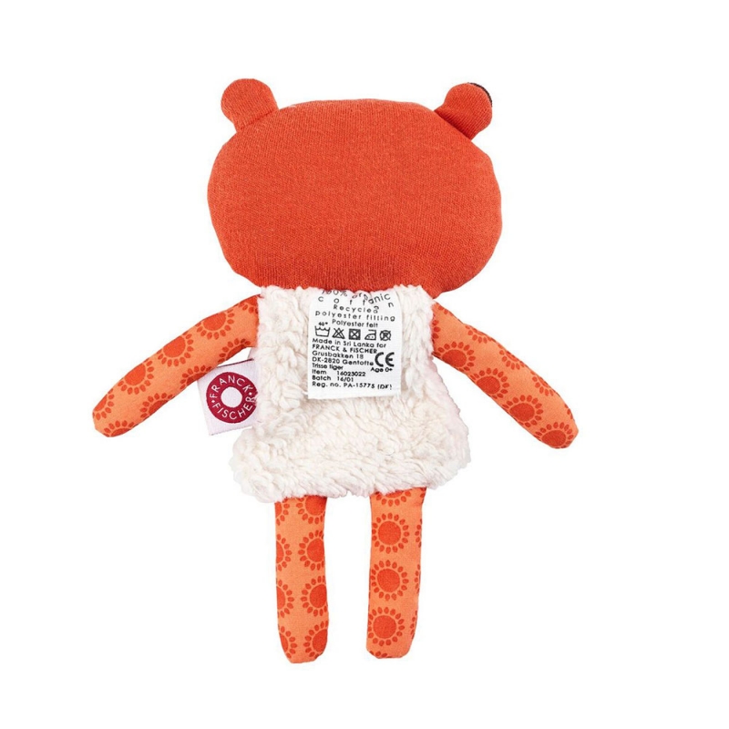 Adatto ai neonati, è realizzato a mano, in morbido cotone biologico certificato. Ha braccia e gambe lunghe e sottili per facilitare la presa. Colori e disegni stimolano la fantasia, e la diversa lavorazione del cotone risveglia nei più piccoli il senso del tatto.