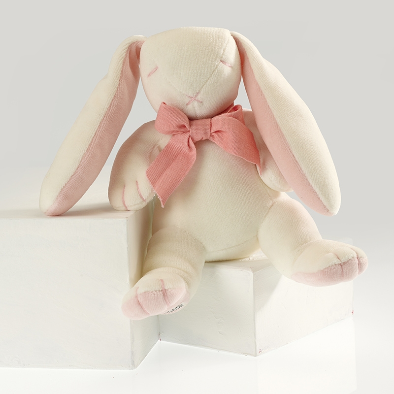 Peluche "Bunny" rosa in cotone biologico, con scatola e biglietto d'auguri con busta. Da 0 mesi.