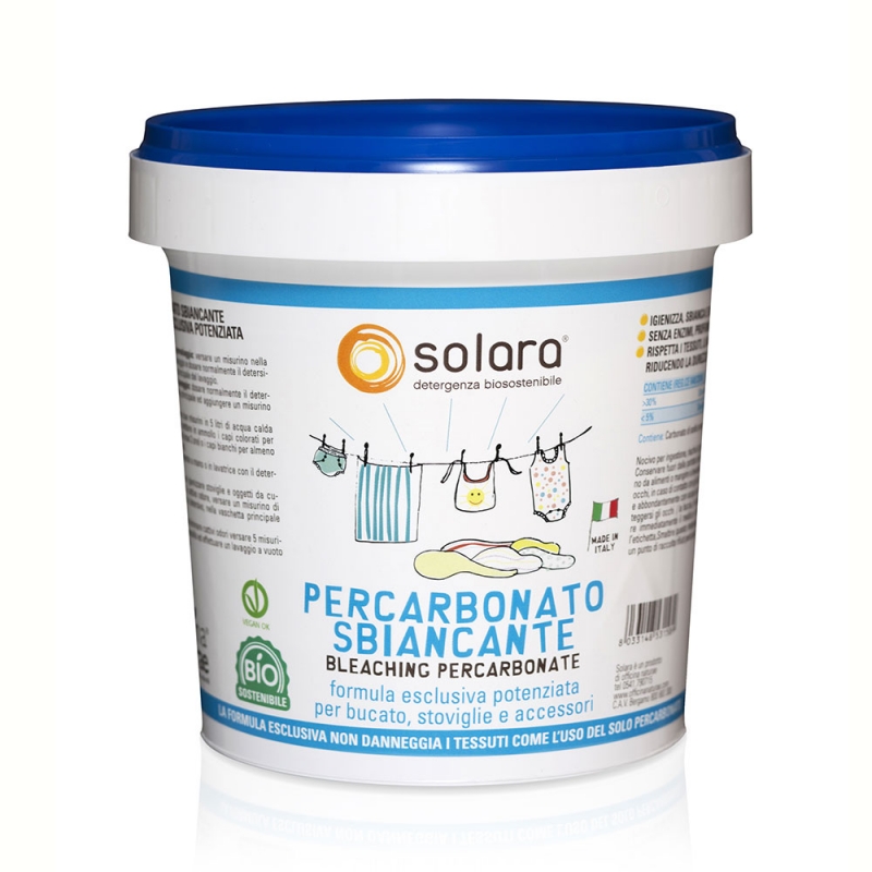 Il Percarbonato di Sodio puro, invece, crea dei sali di Carbonato di Sodio, che si depositano sulle trame dei vestiti e li induriscono, rendendoli poco gradevoli sulla pelle. Per questo motivo è sconsigliabile usare il Percarbonato di Sodio puro per il lavaggio dei pannolini lavabili. Inoltre, con il tempo perde di efficacia.