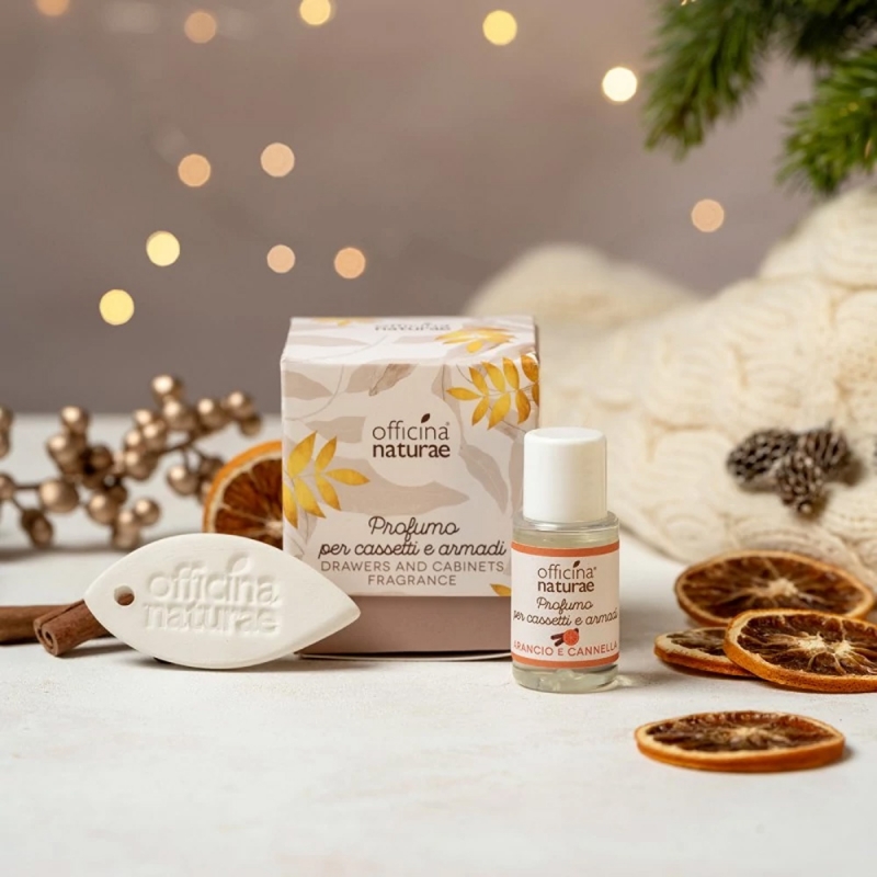 Un regalo natalizio (ma non solo!) perfetto: lo Scrigno Regalo Profumo per Cassetti e Armadi Officina Naturae. Profuma la tua biancheria e il tuo armadio con le magiche fragranze del Natale, grazie all’aroma di Cannella e agli oli essenziali biologici di scorza d’Arancio e Limone. Include una foglia in ceramica fatta a mano per un’esperienza olfattiva unica.