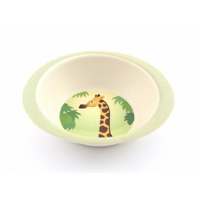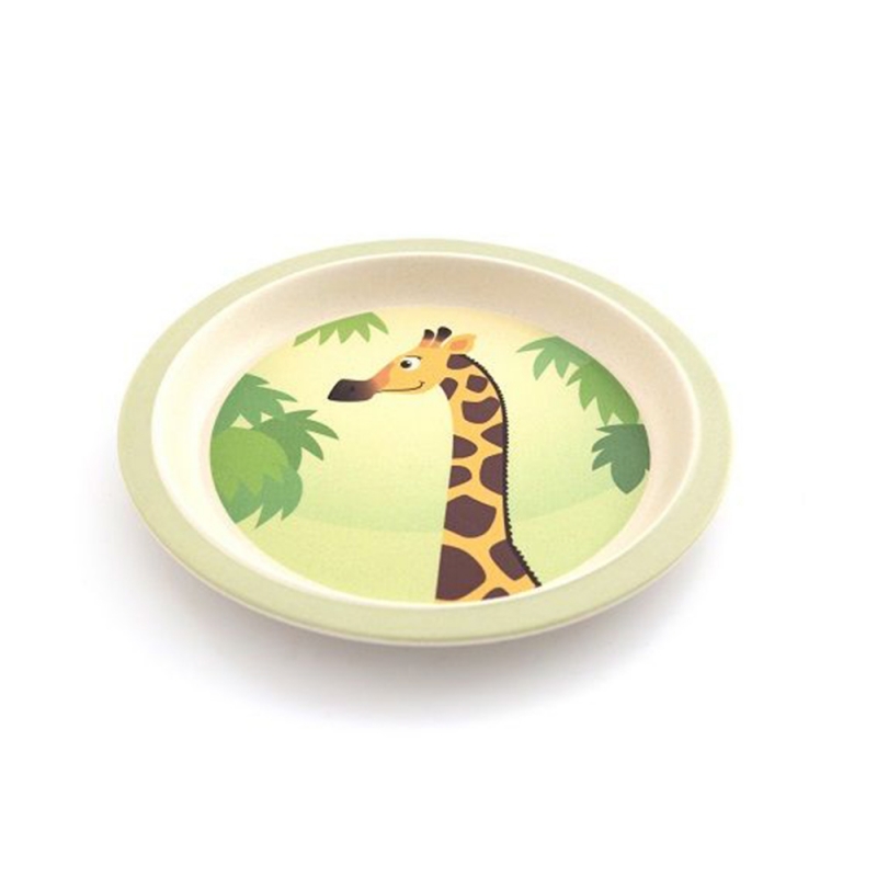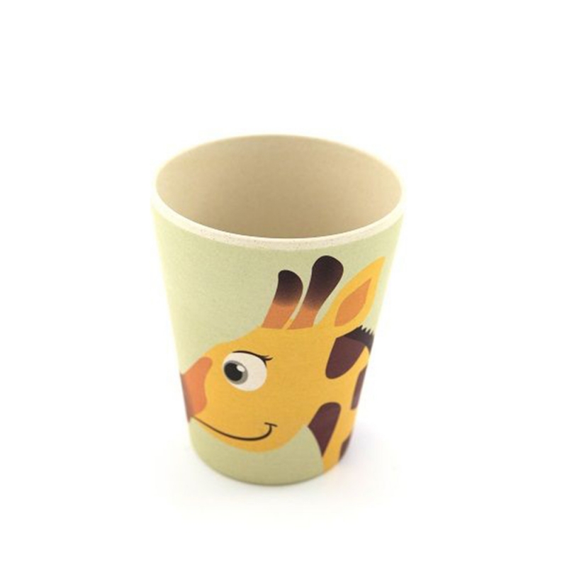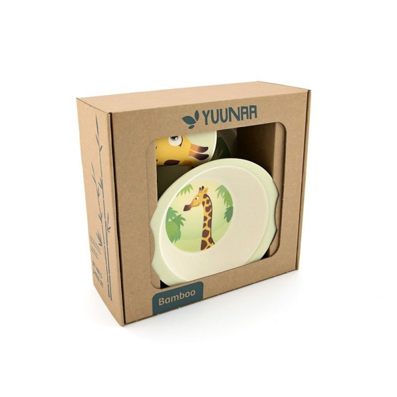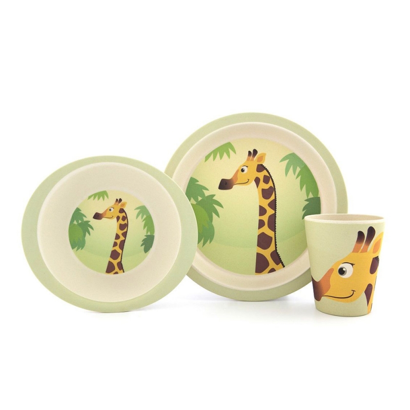 Set bicchiere, piatto e scodella in bambù fantasia giraffa, Yuunna.